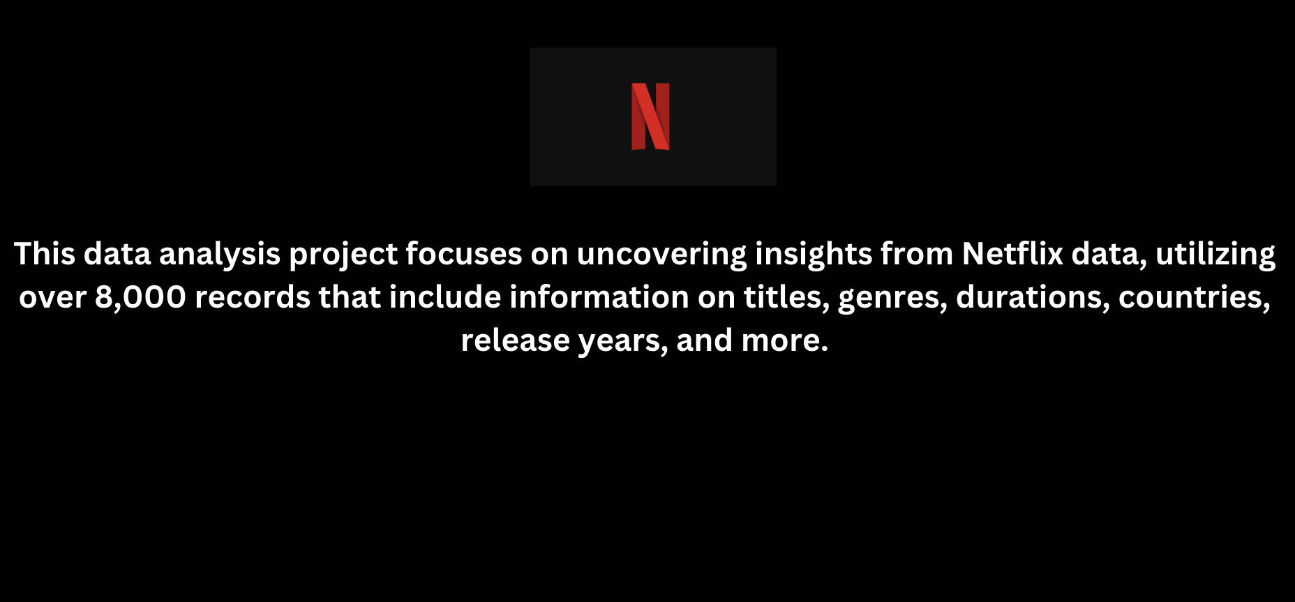 The project focuses on basic data cleaning and visualization analysis of over 8,000 Netflix records, culminating in an interactive dashboard.